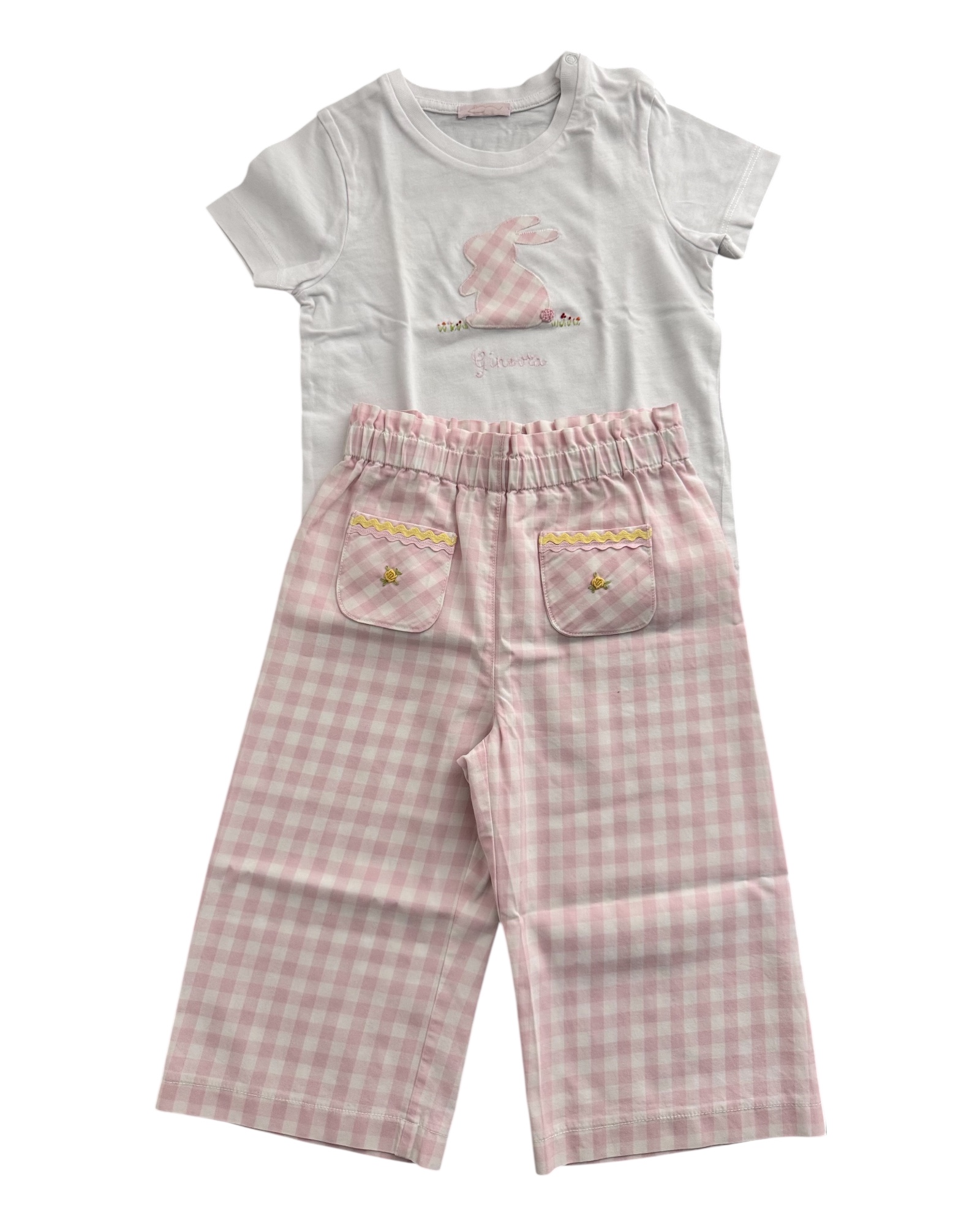 Completo perfetto per Asilo Zia Zazza baby In ottimo cotone Ricamo ginevra sulla maglietta
