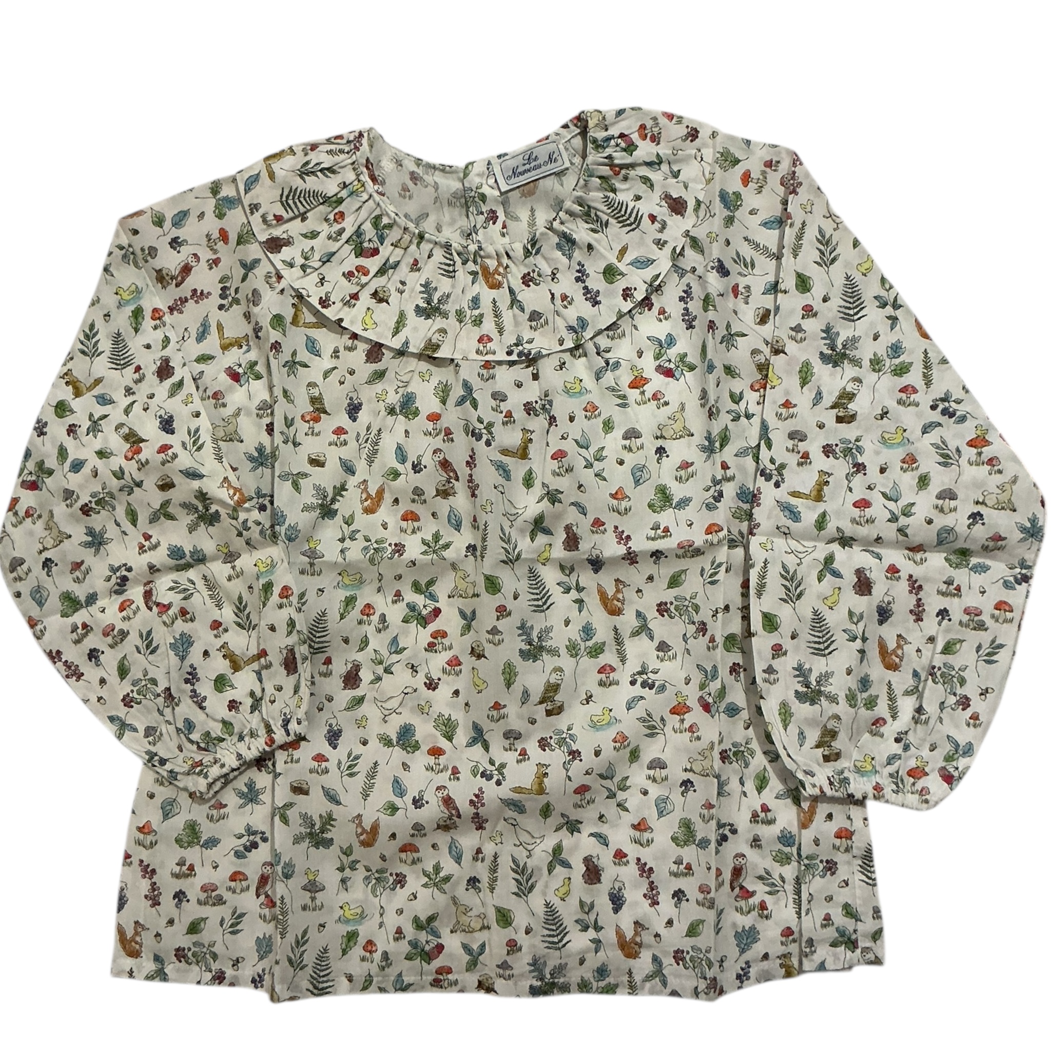 Blusa a maniche lunghe liberty con fantasia animali del bosco