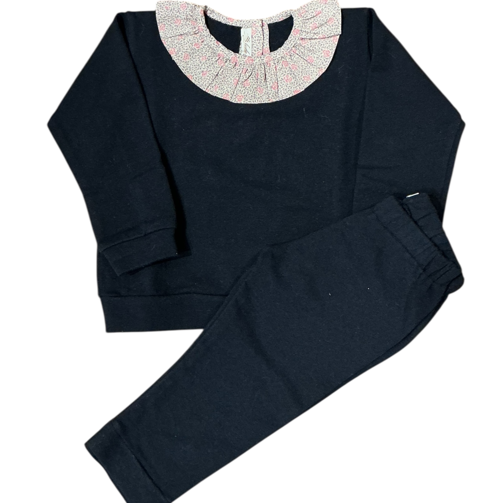 Felpa con colletto liberty con rouches e pantaloni della tuta coordinati