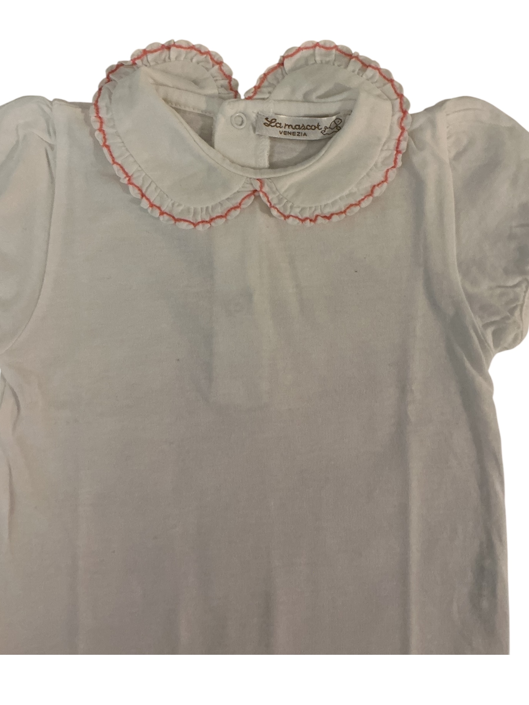 Body in cotone manica corta con colletto con ricamo arancione