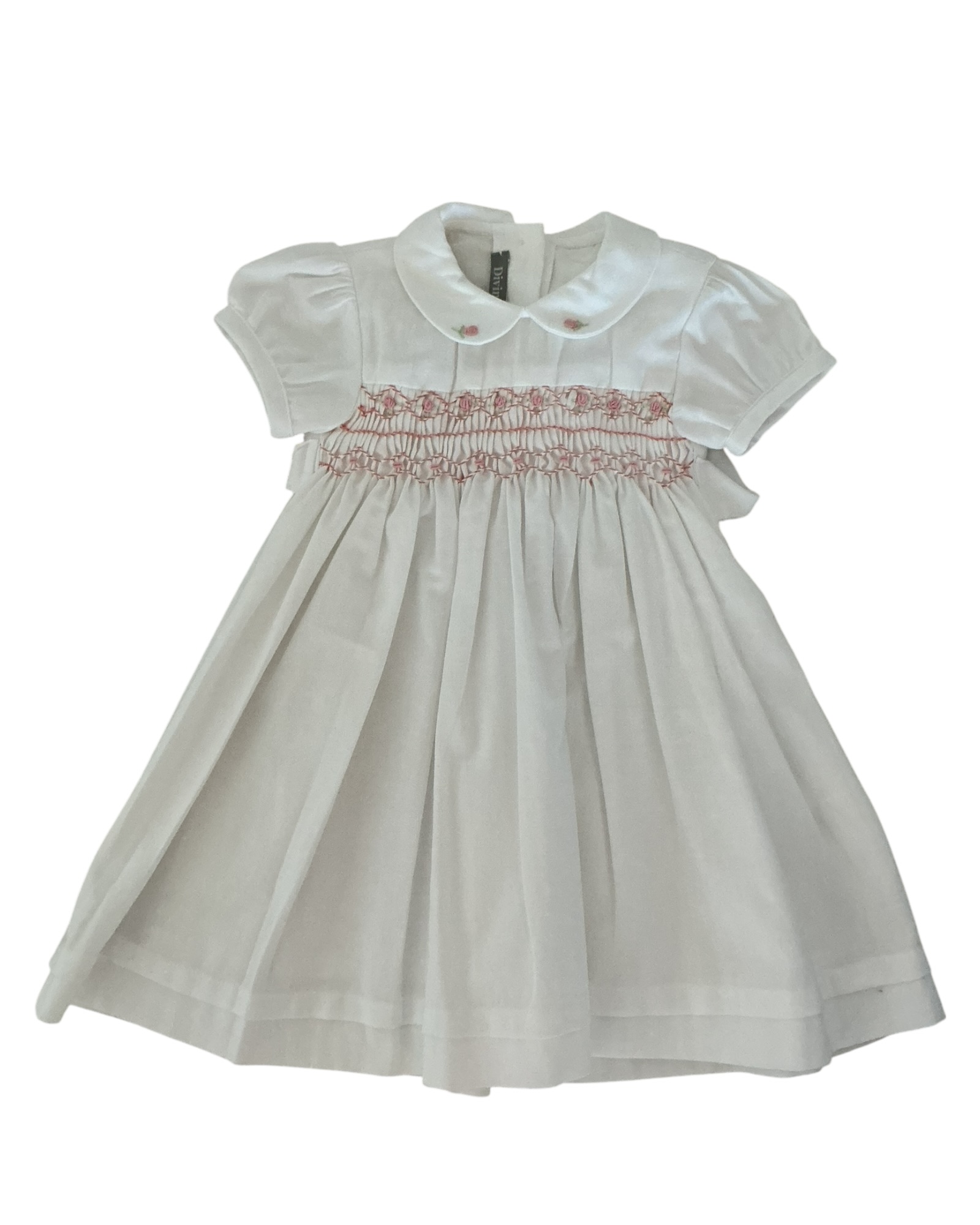 Vestitino in coton, nuovo proveniente dall’archivio di Divini Milano Punto smock fatto a mano con roselline Prezzo retail 350€