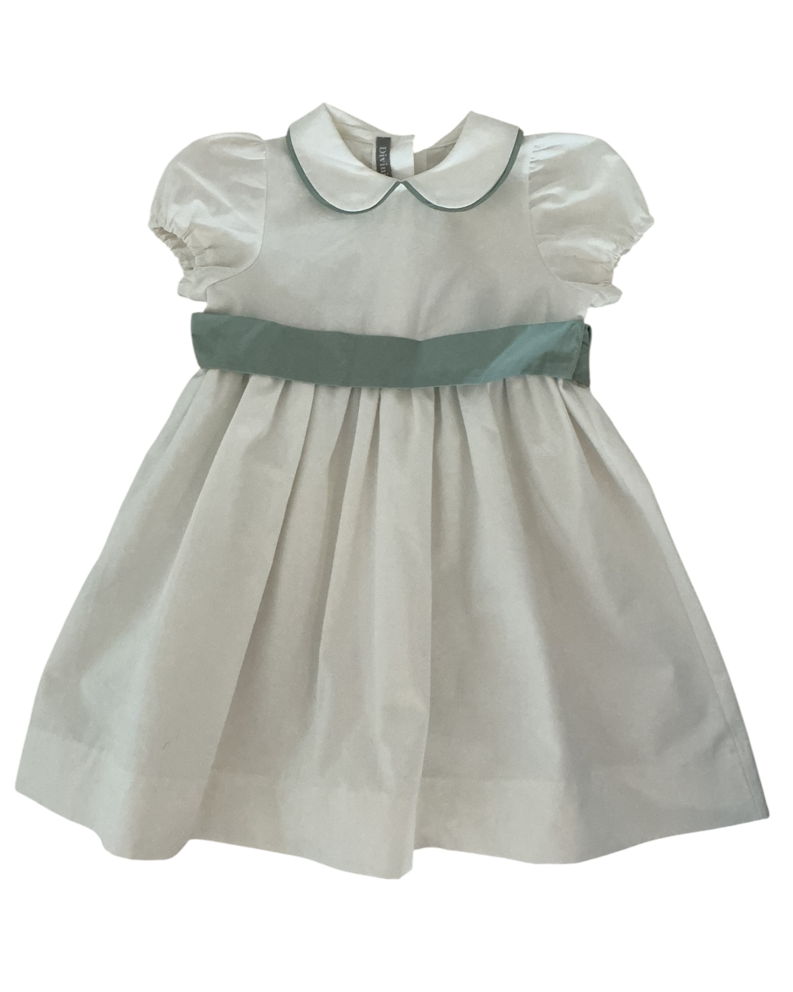 Vestitino da damigella con fisciacca verde salvia Nuovo con cartellino questo capo fa parte di una selezione dell’archivio di Divini Sartoria Retail price 210€