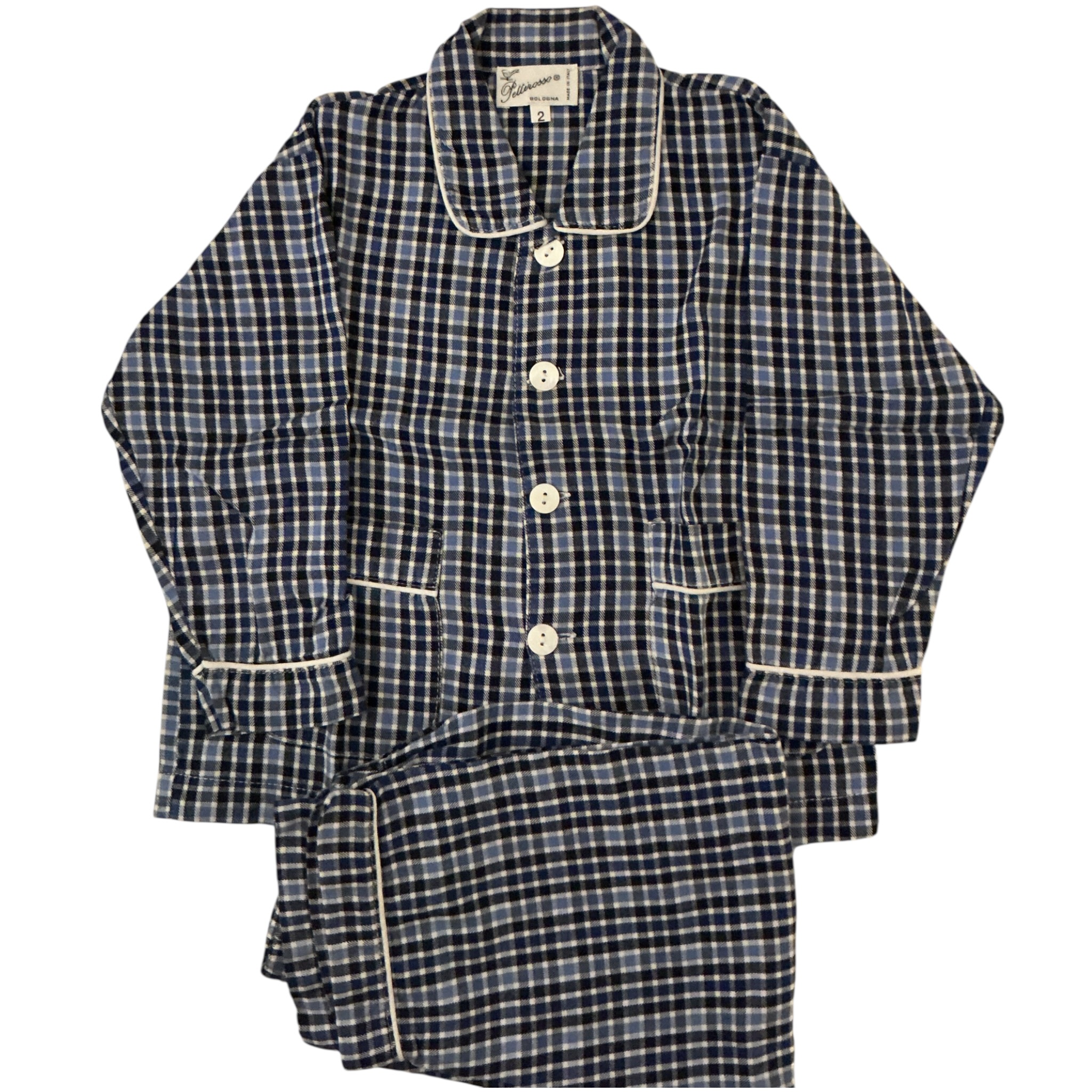 Pigiama a quadretti bianchi e blu