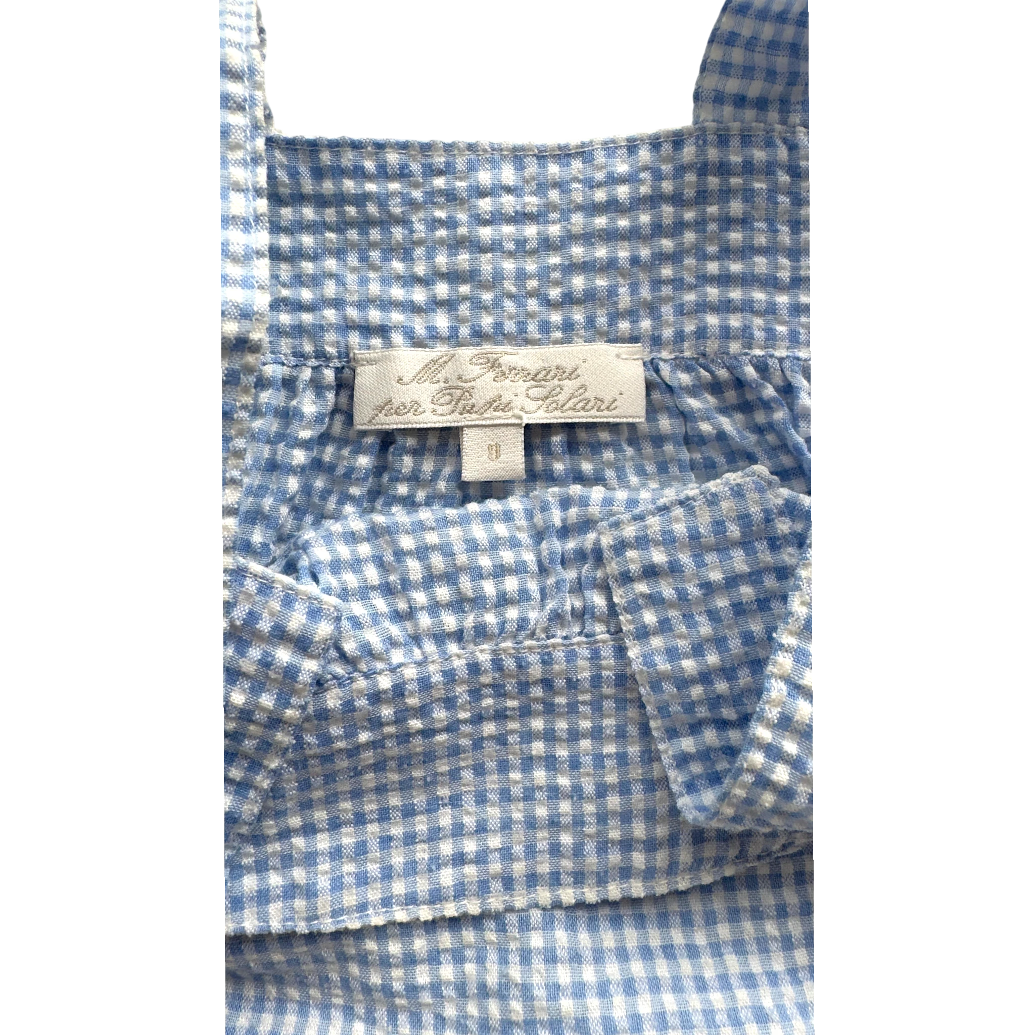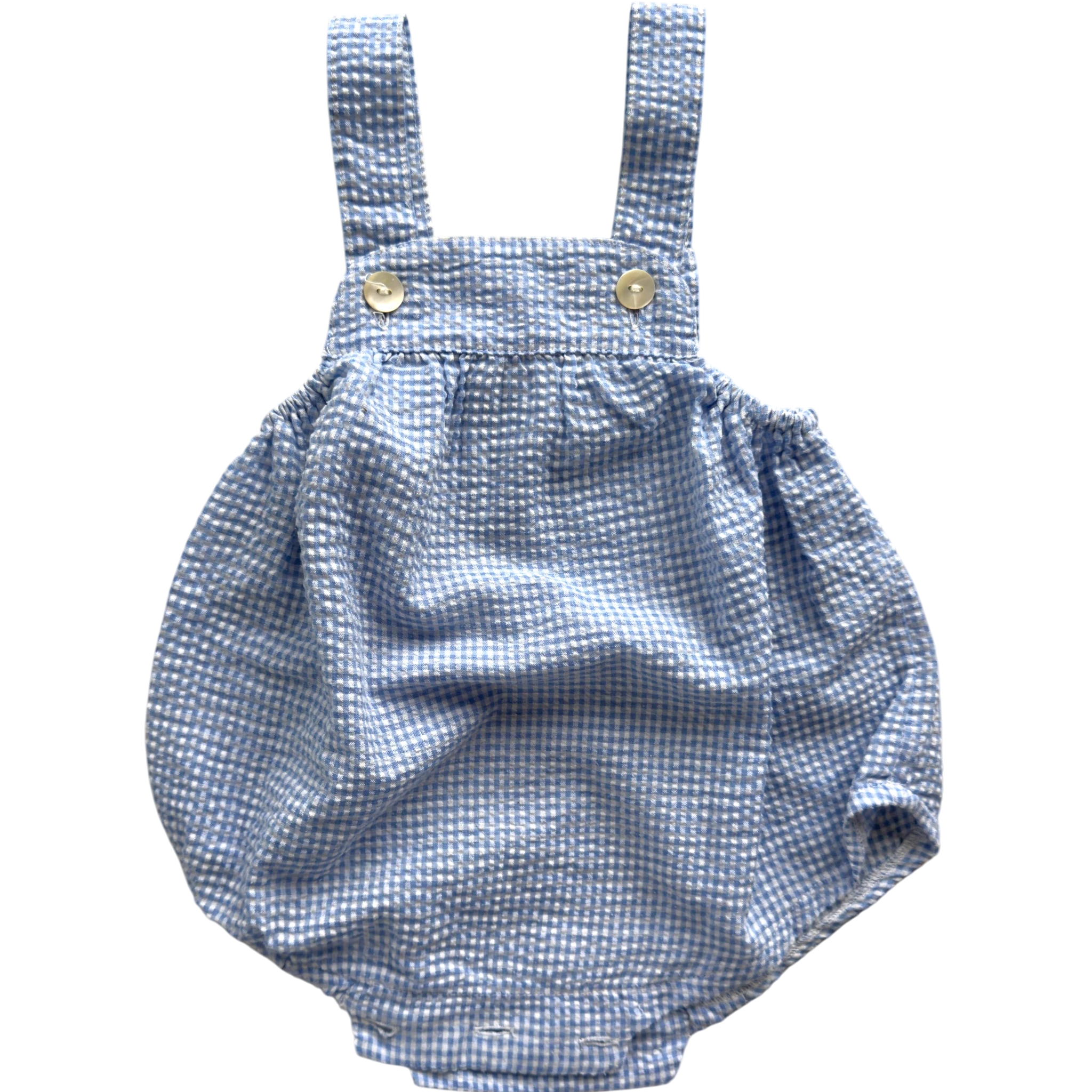 Pagliaccetto con bretelle, vichy a quadretti bianchi e azzurri