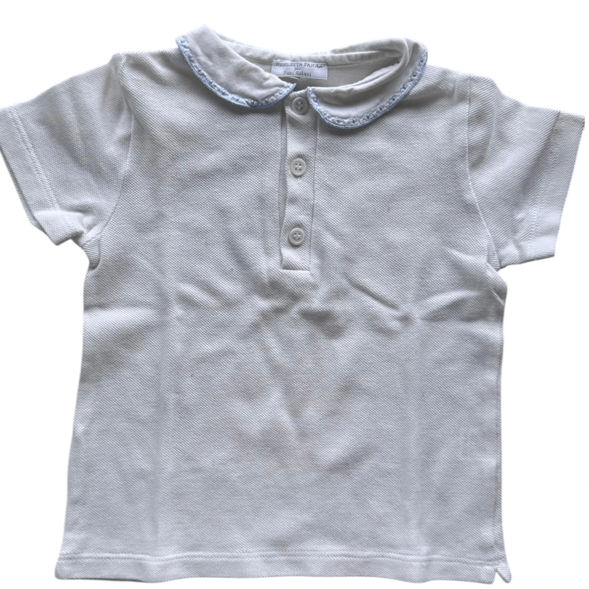Polo a maniche corte Nicoletta Fanna con colletto ricamato profilato celeste