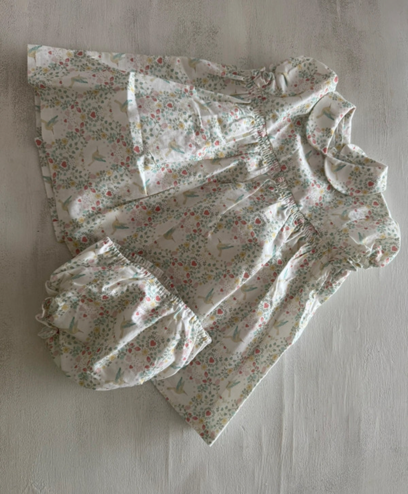 Vestito a manica corta con fantasia floreale e culotte abbinata