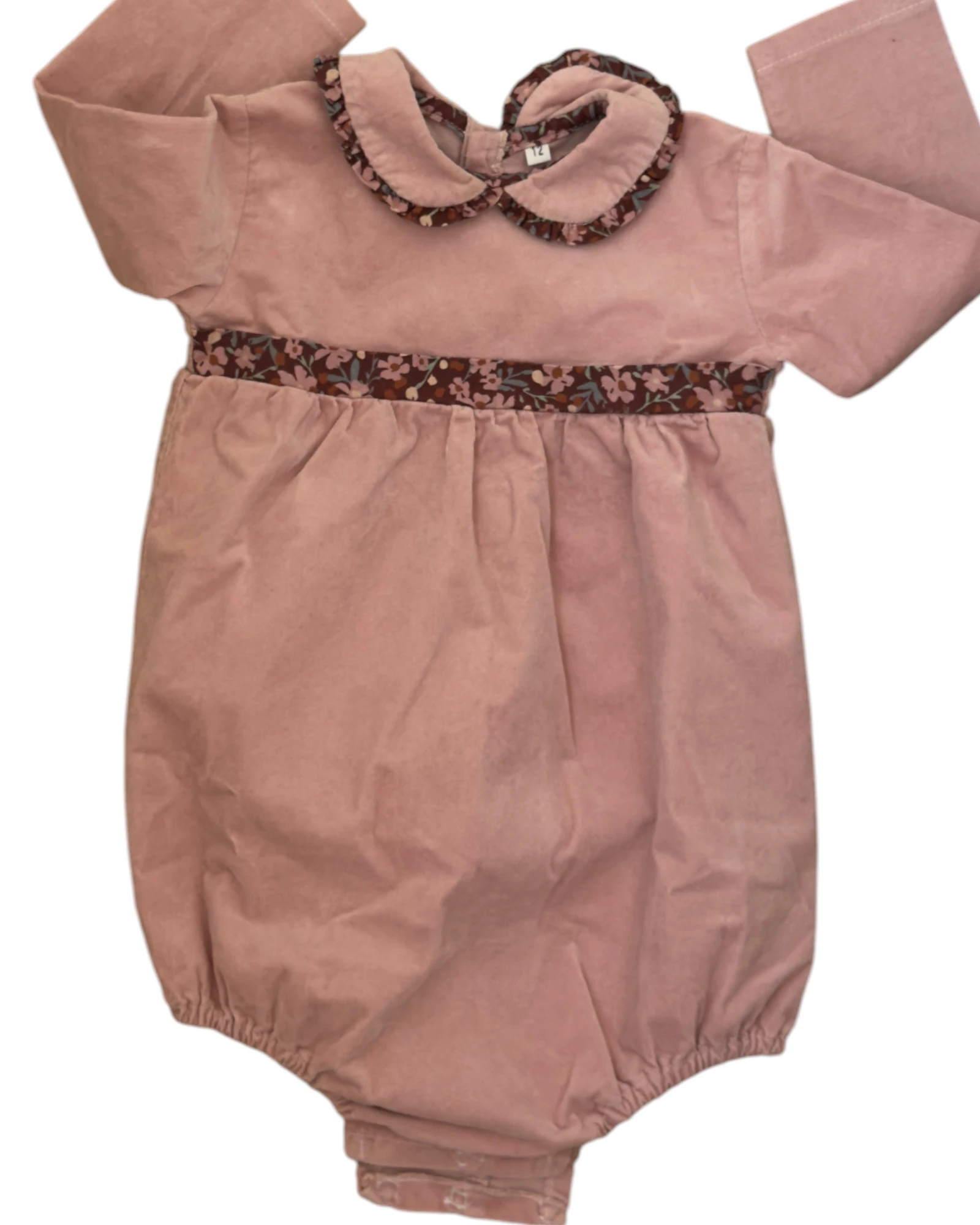 Pagliaccetto a maniche lunghe in velluto rosa con cintura liberty