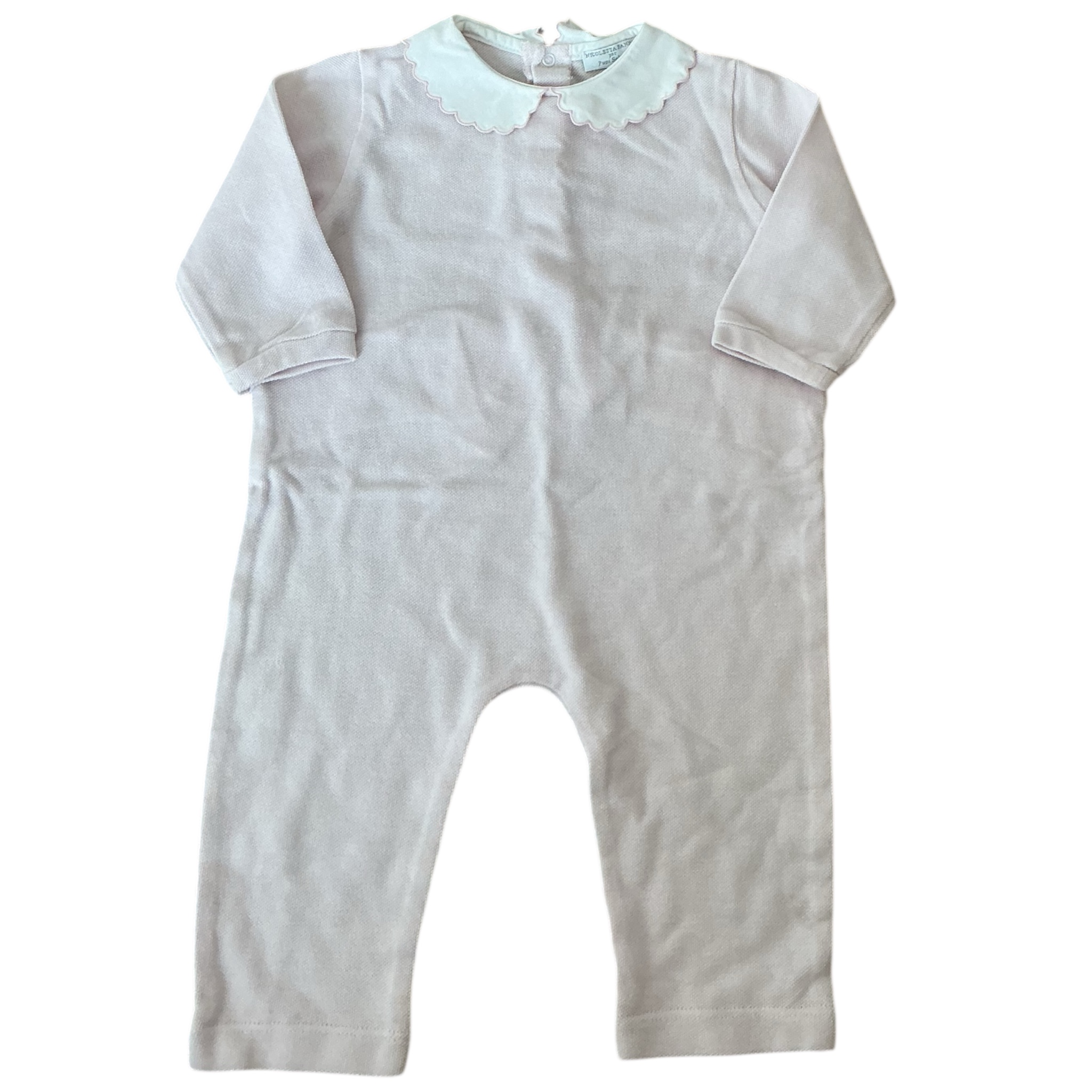 Tutina in piquet di cotone Rosa con colletto ricamato Nicoletta Fanna per Pupi Solari Retail price 95€